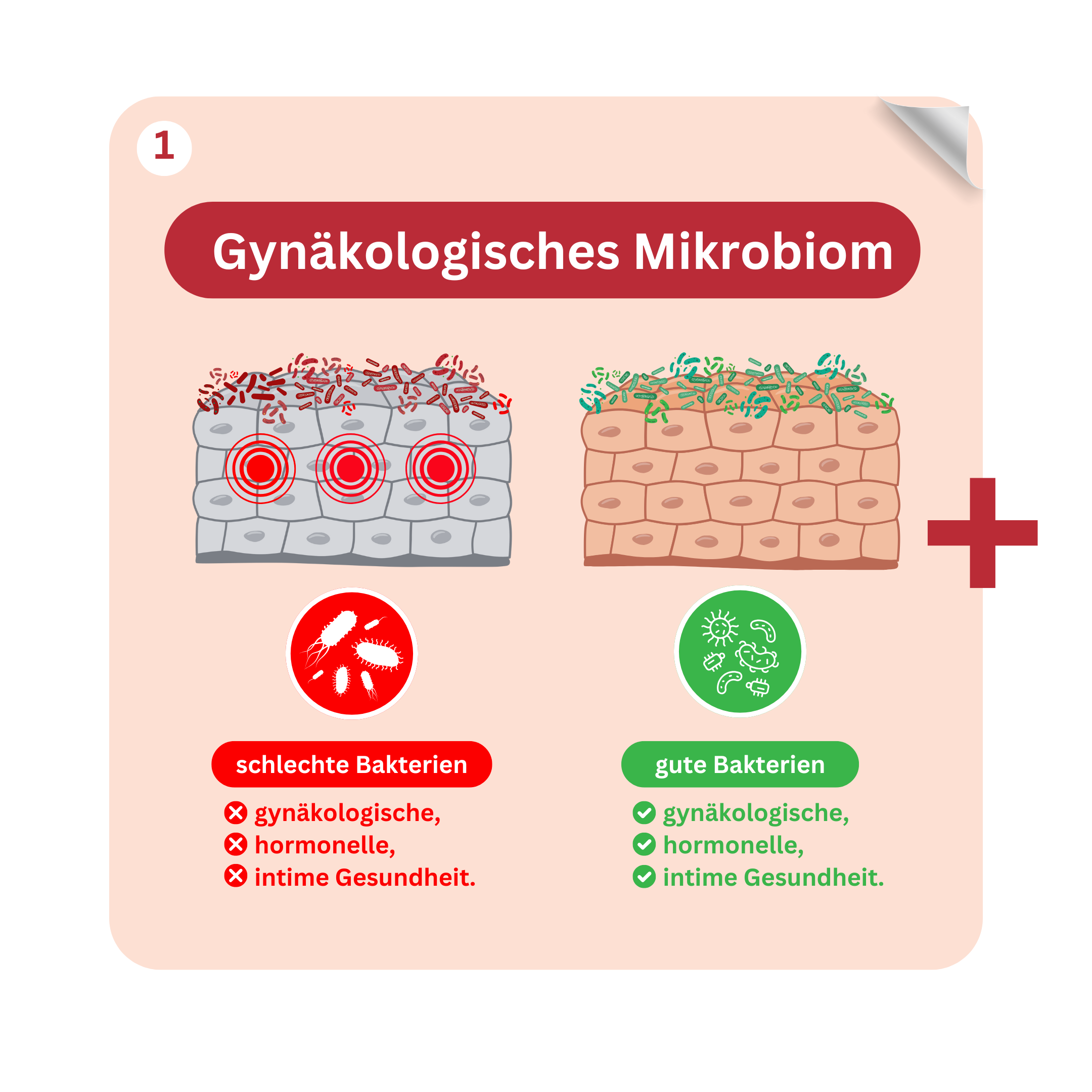 Ein gesundes gynäkologisches Mikrobiom unterscheidet sich deutlich von einem gestörten. Gute Bakterien fördern generell die gynäkologische, hormonelle, reproduktive und intime Gesundheit, während ein Ungleichgewicht ("Dysbiose") zu spürbaren oder versteckten Beschwerden führen kann! Dabei kann ein Ungleichgewicht schnell durch z.B. Verhütungsmittel, hormonelle Veränderungen, Stress, Antibiotika, Ernährung oder Intimhygiene entstehen.